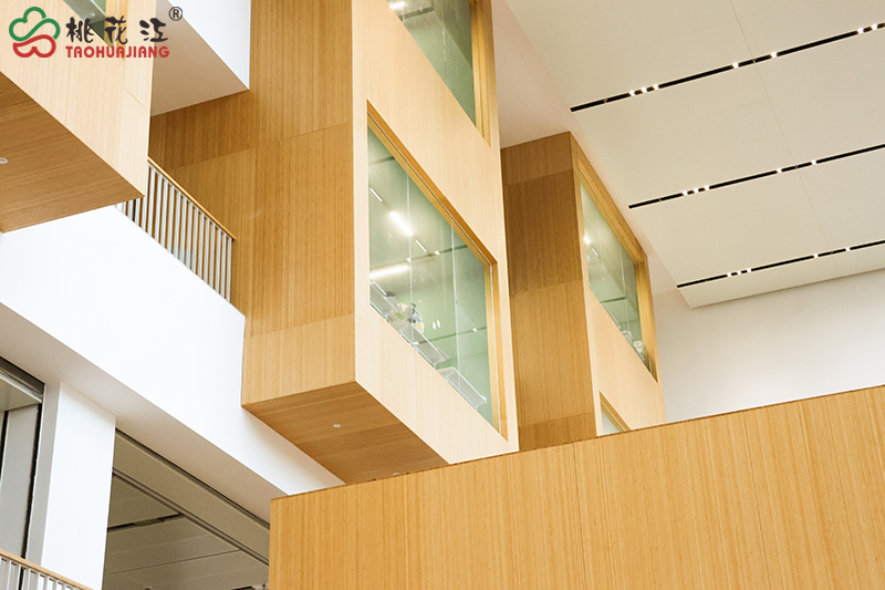 信陽學院南湖校區(qū)位于河南省信陽市南灣湖風景區(qū)科教園區(qū),占地面積約1300畝,建筑面積約69萬平方米。項目中,從教學樓的裝飾,到圖書館和學生休閑區(qū)的打造,充分發(fā)揮了桃花江任意竹?的特質(zhì),將竹材的天然美學與科技工藝融入室內(nèi)空間,以地板、墻板、扶手等為載體,詮釋了“竹文化”,打造出兼具文化厚度與功能硬度的綠色空間。這種清新自然,環(huán)保舒適的生活學習環(huán)境,既充滿人文關懷,又不失創(chuàng)新精神,完美契合了校區(qū)的設計理念:“崇尚自然、追求卓越、引領創(chuàng)新的山水校園,創(chuàng)建生活學習一體化社區(qū),創(chuàng)造領先靈活的學習環(huán)境”。......